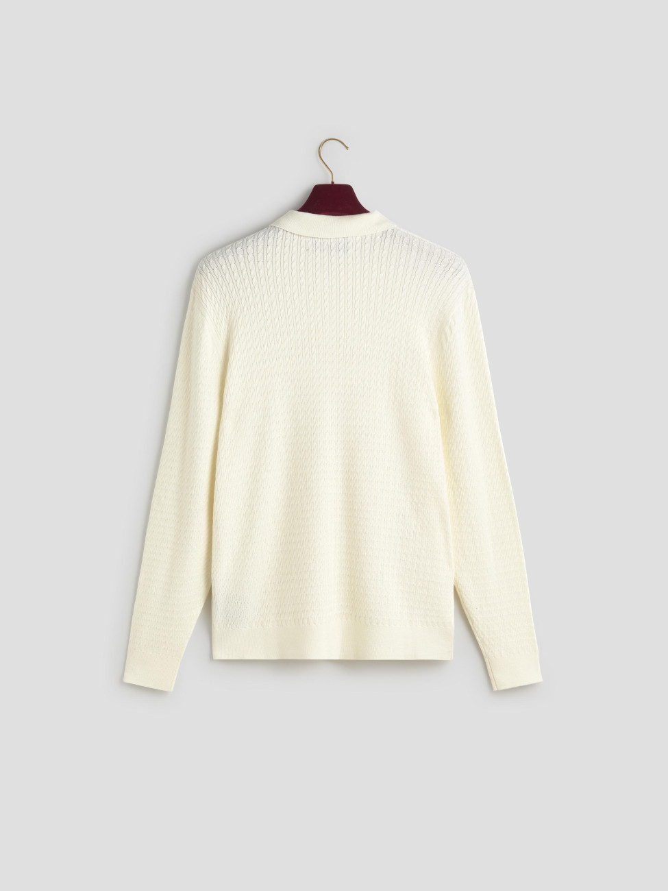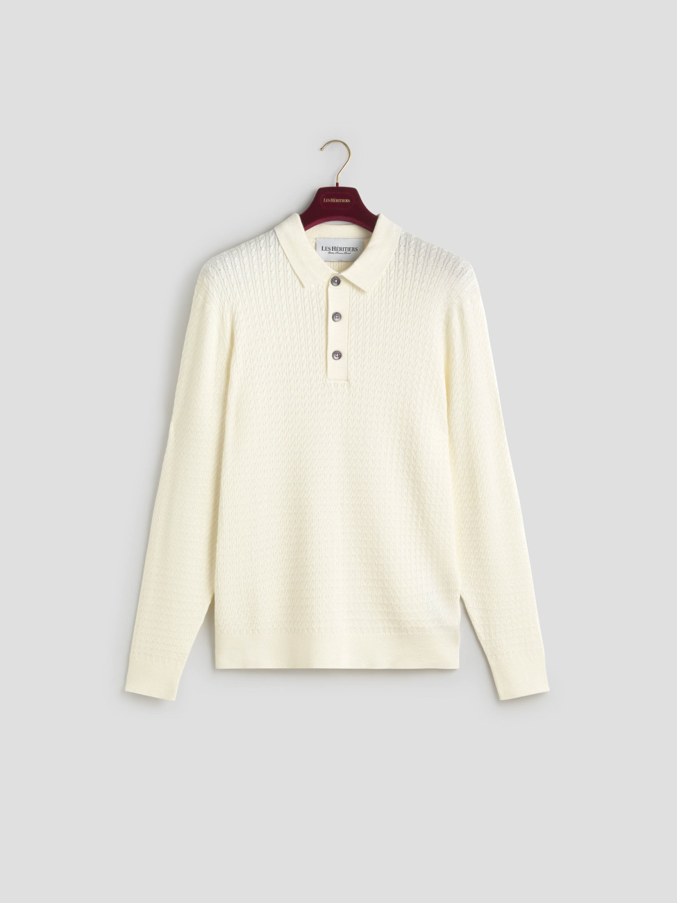 La Merla dels Homes Polo combina sofisticació i confort en una peça atemporal. El seu color blanc Vintage proporciona un toc d'elegància discreta, mentre que la màniga llarga i el tancament de tres botons sota el coll li permeten adaptar-se tant a estils informals refinats com a conjunts més formals.