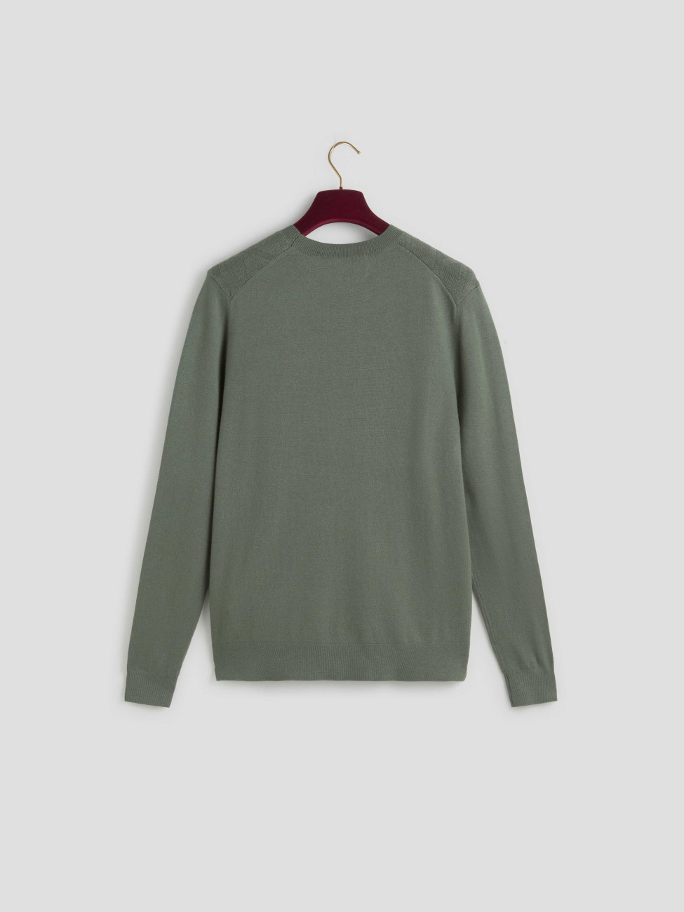 Amb ajust regular i mànigues llargues, aquest jersei ofereix comoditat sense perdre estructura, millorant la silueta masculina de forma natural. El coll rodó i els detalls del canal en punys i baixos proporcionen un acabat polit, reforçant el seu caràcter atemporal.