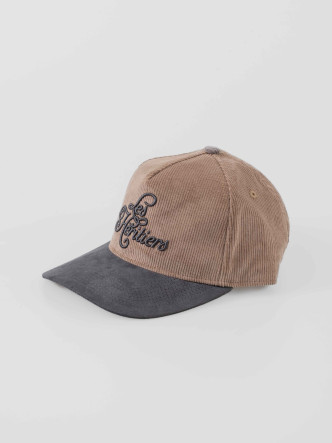 La seva preparació destaca per la barreja de materials: els panells en pana, amb el seu tacte suau i visual acollidor, contrasten subtilment amb la visera en antelina imitació, que proporciona estructura i aire refinat. Aquesta combinació no només enriqueix la seva presència visual, sinó que també enriqueix l’experiència sensorial dels qui la porten.