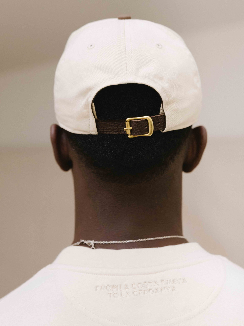 The 3D embroidery "Signature" on the front, in Moka color, stands out on the panels in White Vintage, creating an elegant and sophisticated contrast. The visera, slightly shorter and also in Moka, adds a unique touch of design, while the adjustable leather closure with golden buckle ensures the perfect fit.