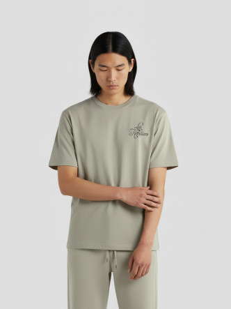 SIGNATURE TEE in color army green, with new SIGNATURE logo embroidered in the chest in contrast color caviar. A clean and intentional detail. Regular cutting and refined style, within the COLLECTION line.