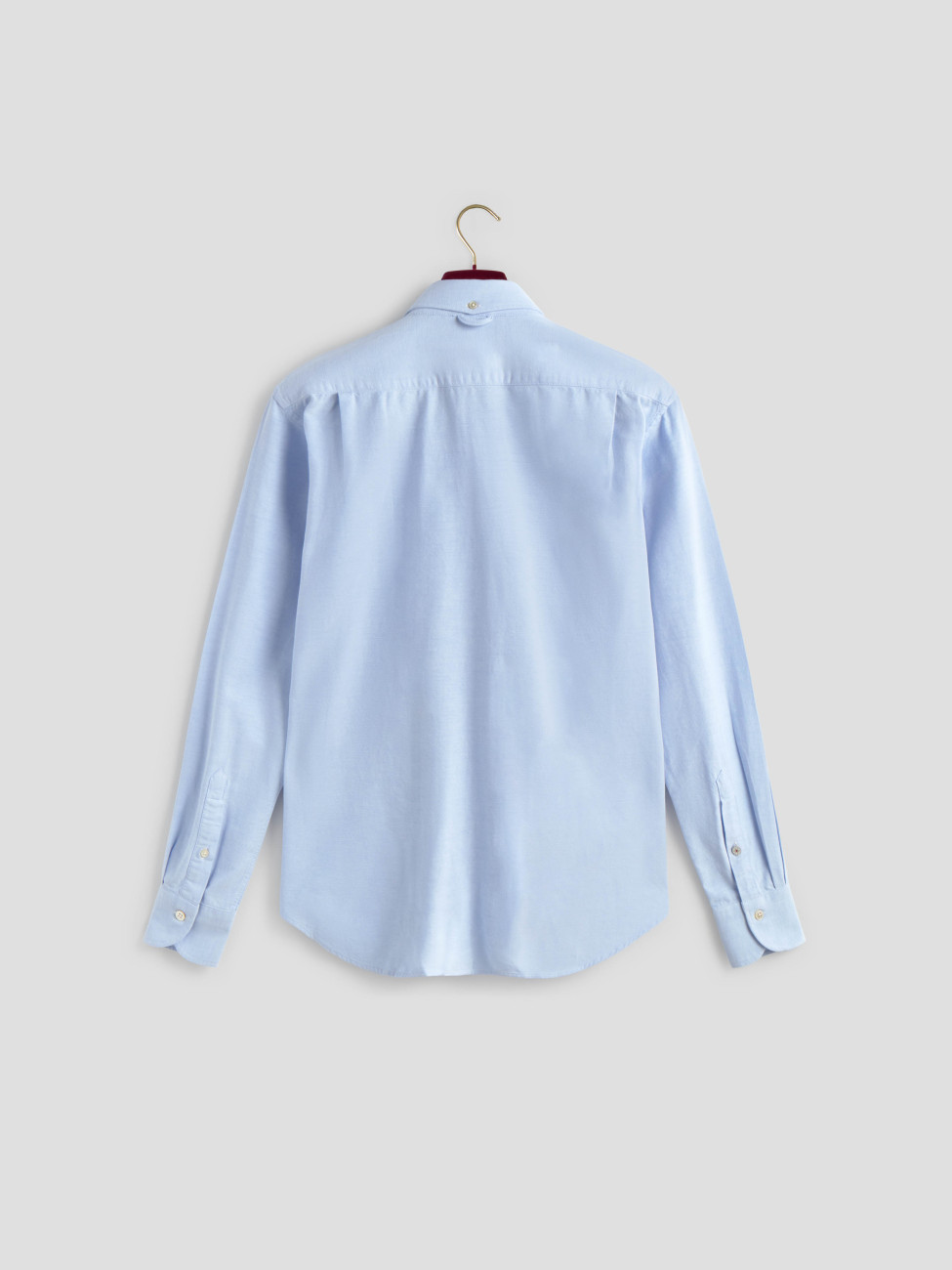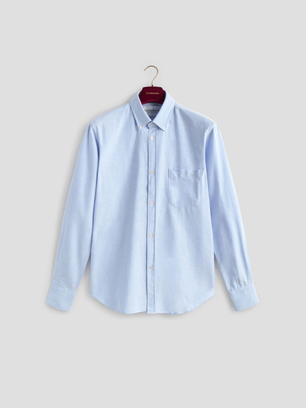 Camisa de hombre Oxford Shirt de Les Héritiers, confeccionada en 100% algodón para un tacto suave y natural. Su diseño clásico con cuello button-down, bolsillo de parche en el pecho y botones de contraste en blanco la convierte en una prenda versátil, perfecta para combinar en looks casuales o más formales. El tejido azul cielo, inspirado en el denim ligero, aporta un aire atemporal y sofisticado, ideal para cualquier temporada.